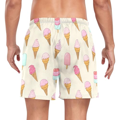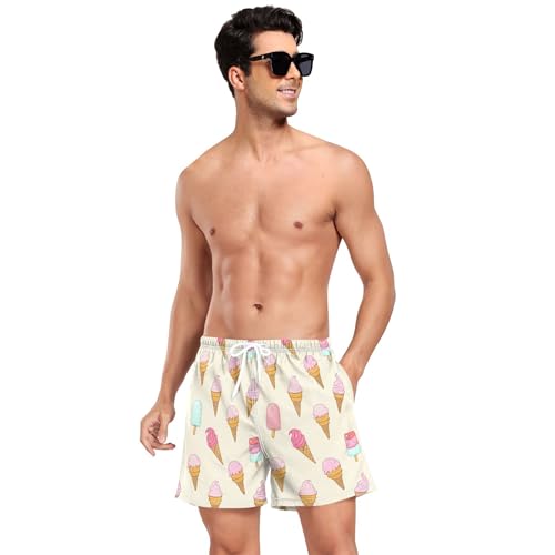 HOT ! xigua Ice Cream Mens Swim Trunks with Liner, 5 inch Quick Dry Mens Boardshorts for Beach