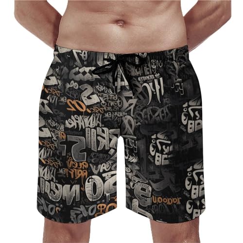 Mens Vintage Graffiti Swim Trunks Swim Shorts Quick Dry Inseam Beach Shorts with Compression Liner and Pocket, Black 1