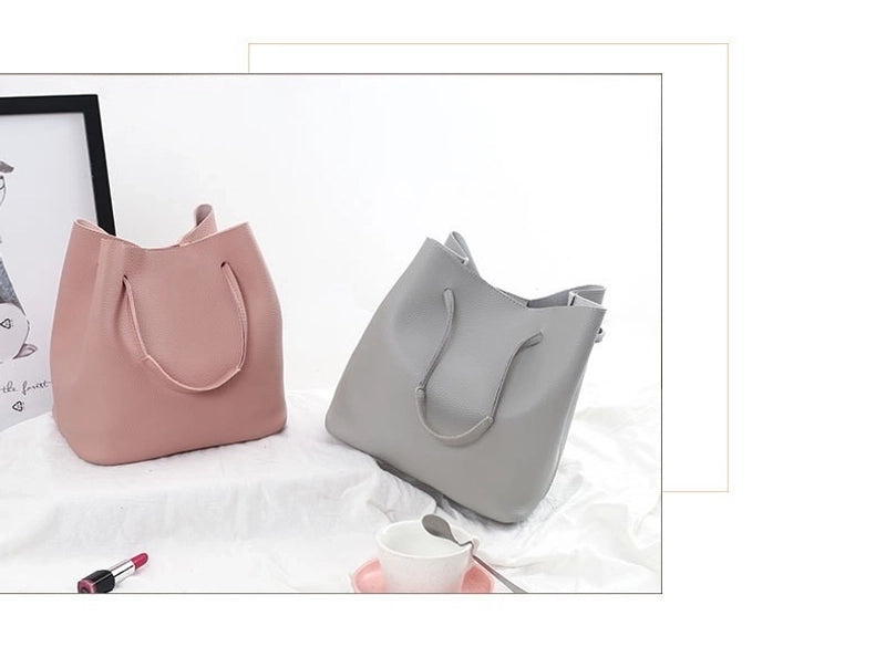 HOT ! Women's Large Pu Leather Solid Color Vintage Style Classic Style Square Magnetic Buckle Bucket Bag