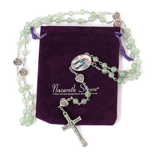 Nazareth Store Natural Stone Beads with Miraculous Epoxy Heart Metal Beads Rosary Necklace Gemstone Christian Gifts 5