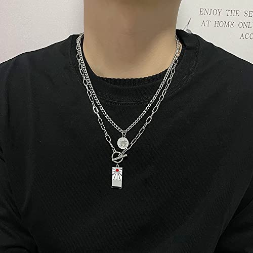 HOT ! Anime Demon Tanjiro Pendant Necklace - Kimetsu Noyaiba Necklace Hip Hop Style Cosplay Jewelry for Women Men (Double layered)