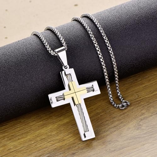 HOT ! YL Cross Necklace for Men 316L Stainless Steel Jesus Christ Pendant Jewelry Rolo Chain for 20″ 22″ 24″ 26″ 28″