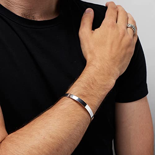 Men's Solid 925 Sterling Silver Bangle, Plain Silver Cuff Bracelet for Men - Gift Boxed - Ideal Jewelry Gift for men 6