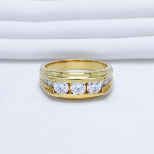More information about Men's 3-stone Anniversary Wedding Band Ring Round Lab Created Moissanite & Lab Grown Diamond Channel Set Ring In 925 Gold Plated Sterling Silver 10K & 14K Solid Gold Jewelry Gift For Him (1.00 Cttw)