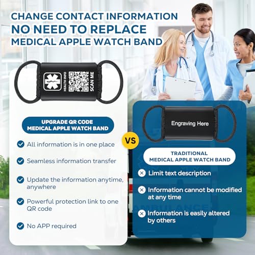 • 【ALL-IN-ONE INFORMATION】Get all the necessary information in one place with our Medical Alert ID Tag for Watch Band. Unlike traditional engraved tags, our QR code tag can contain a huge amount of information, so you don't have to limit what you want to include. Our Medical Alert ID Tag for Watch Band is perfect for those diagnosed with epilepsy, cancer, diabetes, heart conditions, people with food allergies, and those who need transplants.