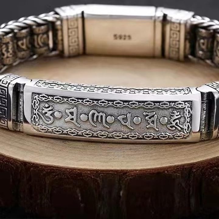 HOT ! Feng Shui Bracelets for Men Women, Retro Six-Character Mantra Bracelet, Tibetan Buddhist Bracelet, 925 Sterling Silver Wealth Meditation Amulet Bring Good Luck, Personalized Jewelry