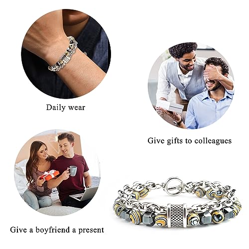 • [UNIQUE MENS BRACELET] :Gallstone chain beads bracelets make you look more masculine,and catch more eyes on you