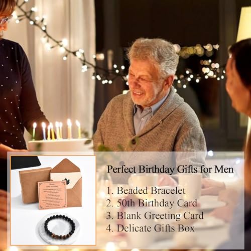 • Ready for Giving: 50th birthday gifts for him will come with a cool beaded bracelet, a meaningful 50th birthday card, a blank greeting card with an envolope and a gift box. Best mens 50th birthday gift ideas for son/husband/dad/friend/uncle/grandpa on his 50 birthday party