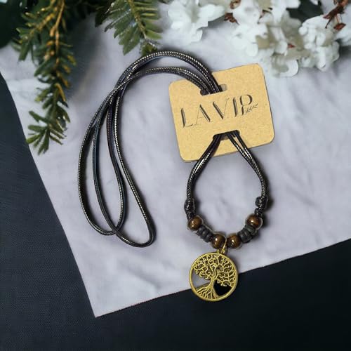 LAVIP Leather Celtic Tree of Life Pendant Necklace Wood Beaded with Adjustable Black Cord Mens Womens 1