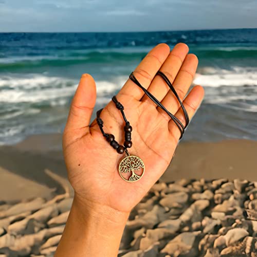 LAVIP Leather Celtic Tree of Life Pendant Necklace Wood Beaded with Adjustable Black Cord Mens Womens 4