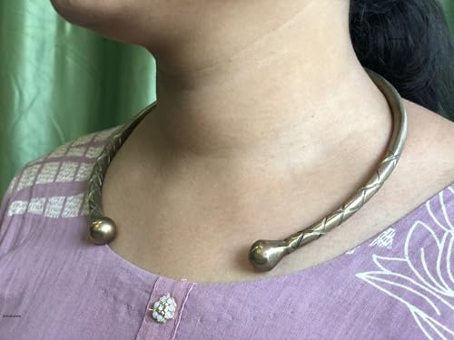ARTIZANSTORE Medieval Hand Forged Celtic Torc Iron Hammered Jewellery Celts Iron Age Pagan Necklace Brass Finish Torque Historical Jewel History 1