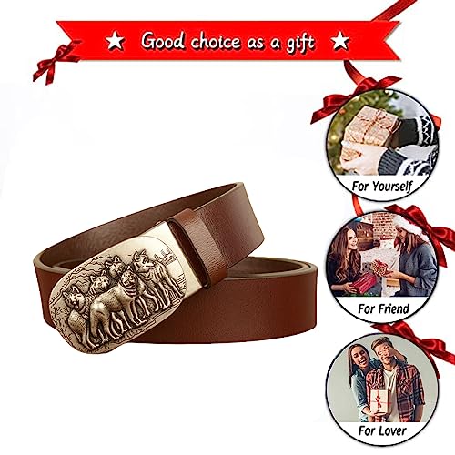Men's Leather Ratchet Belt With Western Wolf Engraved Automatic Buckle For Dress Pants 5