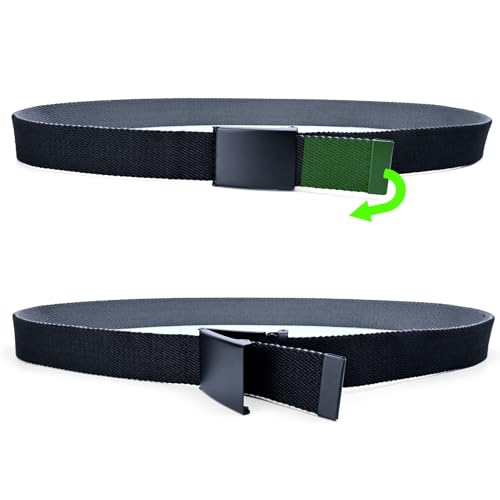 HOT ! Men's Canvas Web Belt with Black Buckle, Black and Gray Reversible Striped Adjustable Work Belts