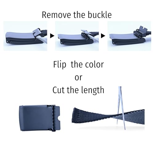 Men's Canvas Web Belt with Black Buckle, Black and Gray Reversible Striped Adjustable Work Belts 5