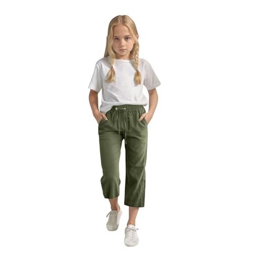 Cotton Linen Cropped Trousers for Girls Capri Pants Kids 3/4 Length Trouser Summer Sweatpants Drawstring Bottoms 6