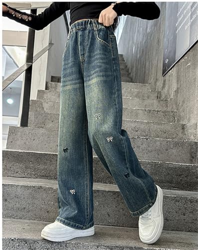 Kids Girls Casual Baggy Wide Leg Denim Pants Elastic Waist Jeans Age 5-14 7