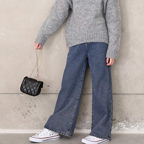Evelin LEE Little Girls Loose Fit Wide Leg Jeans Fashion Solid Color Denim Pants Casual Trousers 6