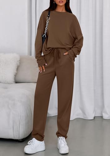 HOT ! PRETTYGARDEN Womens 2 Piece Matching Lounge Sets 2025 Fall Long Sleeve Boatneck Sweatsuit Drawstring Sweatpants Pockets