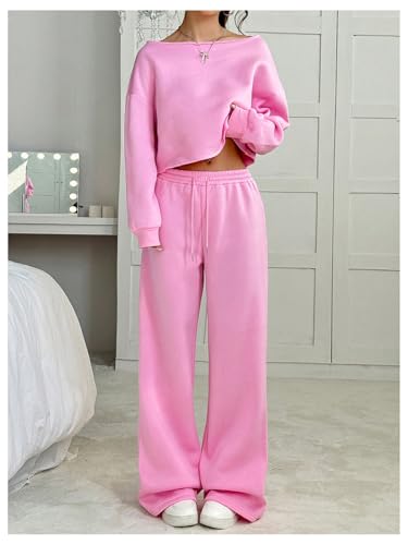 • Feature: Womens fall tracksuits, featuring boat neck, long sleeve, drop shoulder, cropped sweatshirts, drawstring waist, wide leg, loose fit, provide you stylish and cozy look