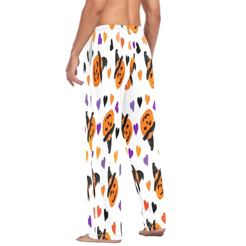 HOT ! Qilmy Pumpkins Witch Halloween Men's Cotton Pajama Pants, Lightweight Lounge Sleepwear with Drawstring and Pocket
