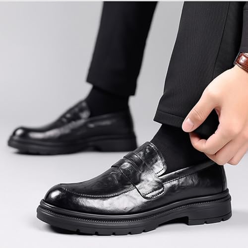 Men's Leather Platform Penny Loafers Retro Round Toe Slip-On Chunky Heel Wedding Dress Shoes Classic Casual Business Formal Shoes 7