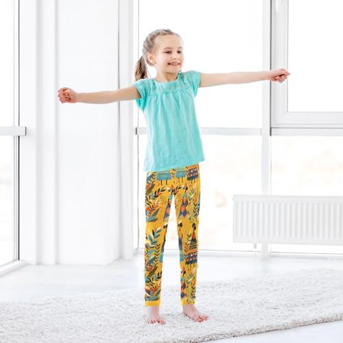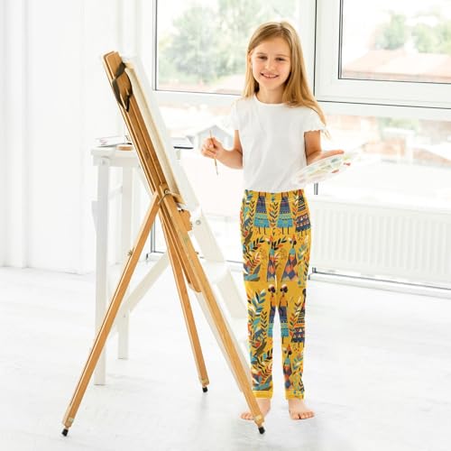 African Ethnic Tribal Graphic Leaf Girls Casual Leggings for Kids Printed Long Pant Bottoms Stretch and Soft 4