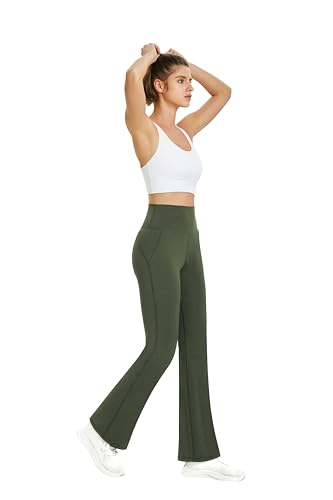 • 【Basic Flare Design】- Timeless yoga pants with a high-waisted design that stays in place,showcasing the perfect figure with a flare at the bottom. Featuring two pockets for convenience – perfect for holding your phone and credit cards.High elasticity,non-see-through,suitable for any movement.