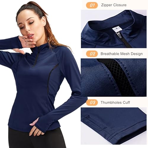 Women's Quarter Zip Long Sleeve Sports Shirts Athletic Hiking Running Undershirt Workout Base Layer Tops 4