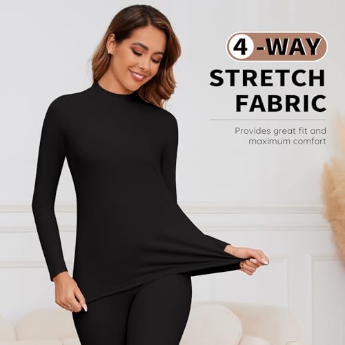 • MOCK NECK TOP - The mock neck design provides extra warmth around your neck and traps heat, making it a practical choice for both outdoor activities and indoor wear. The fitted silhouette ensures a flattering look, making it easy to wear alone or under your favorite winter coats.