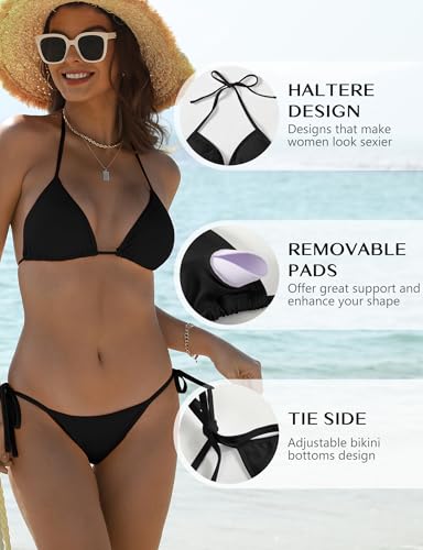 Buauty Bikini Sets for Womens Two Piece Swimsuits Halter String Triangle Bathing Suit Swim Sexy Tie Side Bottom Swimwear 2