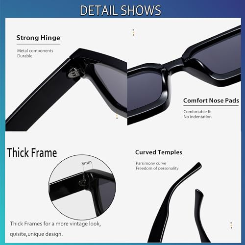 • PROTECT YOUR EYES - These chunky rectangle sunglasses can block 100% harmful UVA & UVB Rays, delivering a superior visual experience and glare protection while maintaining color integrity, all these features will protect your eyes and return you to a world of true color.
