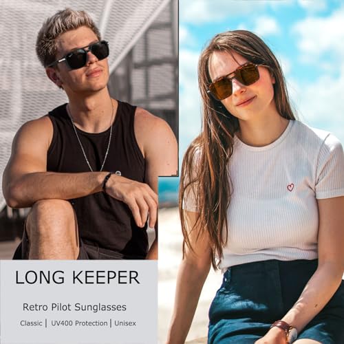 Long Keeper Retro Pilot Sunglasses for Women Men Trendy 70s Vintage Square Sunglasses Stylish Double Bridge Sun Glasses 6