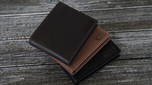 • LET US CUSTOMIZE WALLET OF YOUR LOVED ONES: Personalized with First Name and Last Name, Initials or some inspiration words front, inside left or inside right. We have 3 different colors: Black, Brown, Dark Brown. Wallet dimensions; 3.5’' x 4.5’' x 0.4’'
