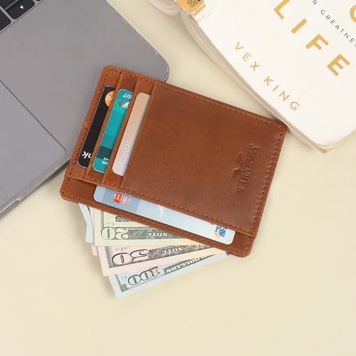 Ultra Slim Leather Wallet Just 0.12 Thick, 6 Card Slots, RFID Blocking, Soft, Durable, Minimalist Genuine Leather, Credit Card Holder for Men & Women Great Gift 6