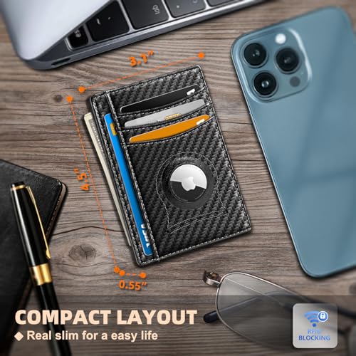 Slim Wallet Airtag No-hole,Mens Smart Minimalist Wallet Card Holder 7cards Compatible for Apple Airtag,RFID Blocking 6