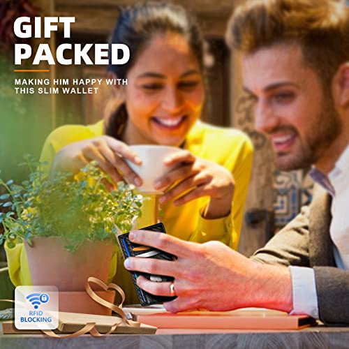 HOT ! Slim Wallet Airtag No-hole,Mens Smart Minimalist Wallet Card Holder 7cards Compatible for Apple Airtag,RFID Blocking