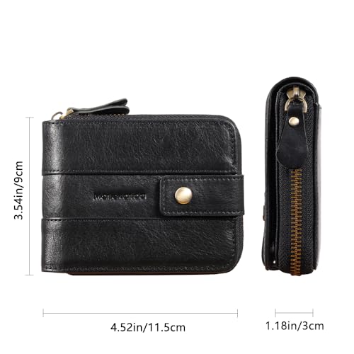 More information about men's RFID shielded wallet, zipper leather wallet, suitable for men, with ID window and 14 card clips (Black)