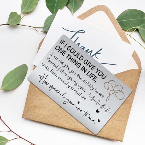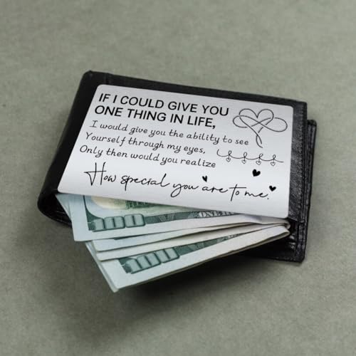 • Mini Love Note: The metal wallet insert card is engraved with mini love quote “If i could give you one thing in life, i would give you the ability to see yourself through my eyes, only then would you realize how special you are to me”.
