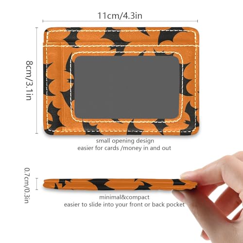 JUNZAN Slim Wallet Card Holders for Men Women Halloween Bats Orange Black Minimalist Front Pocket Wallets Small Card Case RFID Blocking 5