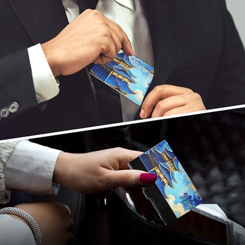 KLL Blue and Gold Chinese Landscape Slim Business Card Holder case with Leather & Stainless Steel Card Holder case for Travel Home or Office Use tarjetero para Hombres 4