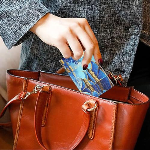 KLL Blue and Gold Chinese Landscape Slim Business Card Holder case with Leather & Stainless Steel Card Holder case for Travel Home or Office Use tarjetero para Hombres 6