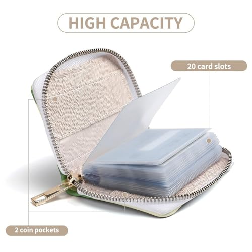 • Large Capacity: The card holder measures 4.5 x 6.3 inch. Slim pocket design perfect to fit in your pocket and wallet. It designed with 20 card slots that can hold your credit card, ID card, name cards, etc. 2 coin pocket for storing folded cash and money