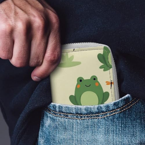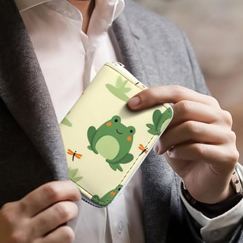 HOT ! Compact Credit Card Organizer Case for Men Women, Portable Mini Card Holder Organizer with Zipper Green Frog Animal Cute Frogs Pu Leather Wallet