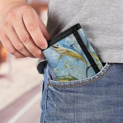 Blue Marlin Fish Jumping Trifold Wallets for Men Women Ultra Thin Card Holder Purse with Zip Coin Pocket 6