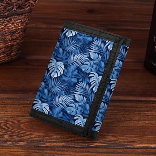 • Design: Featuring a versatile trifold design, this men's wallet includes a front zipper compartment for quick access to essentials. Inside, there are spaces dedicated for ID cards, cards, and changes. The inclusion of a keychain allows you to carry your keys effortlessly, making it a Blue Tropical Plants Print simple wallet for men that's all about practicality