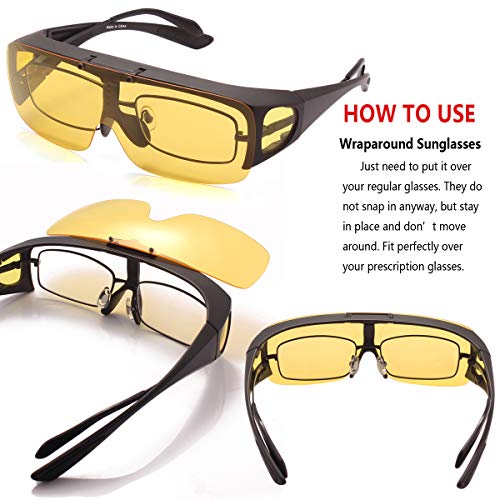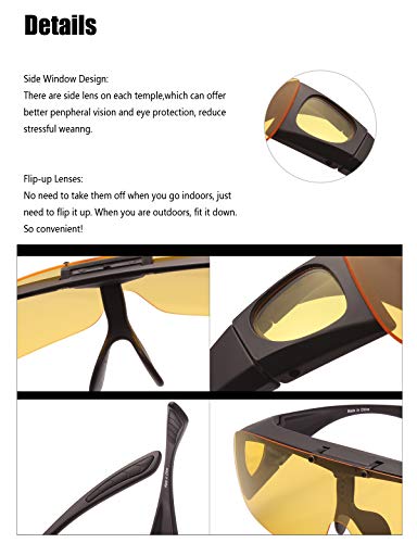 • This polarized sunglasses specially designed for wearing over prescription eyewear, It easily clip on over your regular glasses,Ensure driving safety on foggy or rainy days
