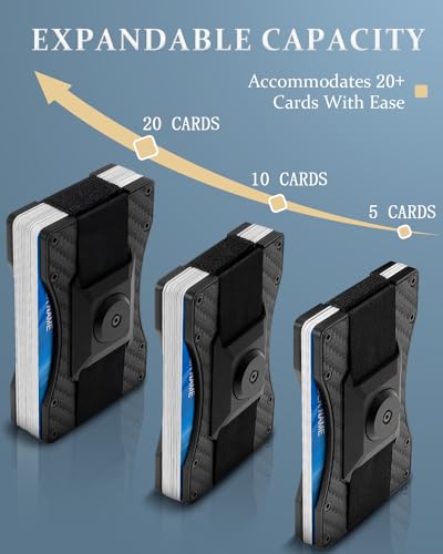 Minimalist Metal Wallet for Men, Slim Tactical Wallet, Rigid Aluminum Smart Wallet Holds 20 Cards and Cash, Carbon Fiber Money Clip, Fidget Spinner Function 5