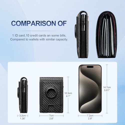Magnetic Wallet with Card Holder for Iphone12~16, Slim & Minimalist Airtag Wallet with RFID Blocking Card Holder, Genuine Leather, Stretch Front Pocket, Carteras Hombres 6