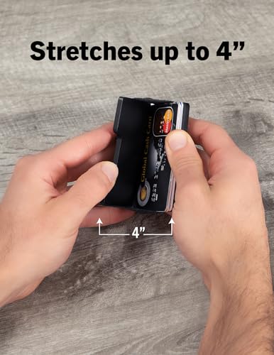 • Aluminum Design: Our men’s wallet consists of aluminum wallet walls held together with elastic bands. The elastic bands can stretch up to 4 inches and can fulfill any wallet needs you have. This wallet also has a removable money clip that can be taken out when it is not needed.