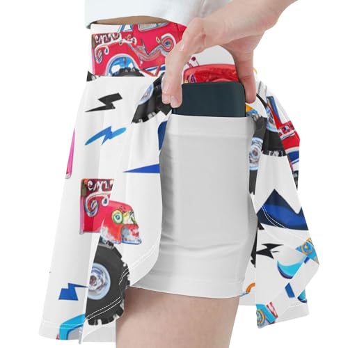 Girls' Shorts Athletic Skorts Colorful Monster Trucks Toddlers Tennis Skirts Pleated Pleated 3t 7